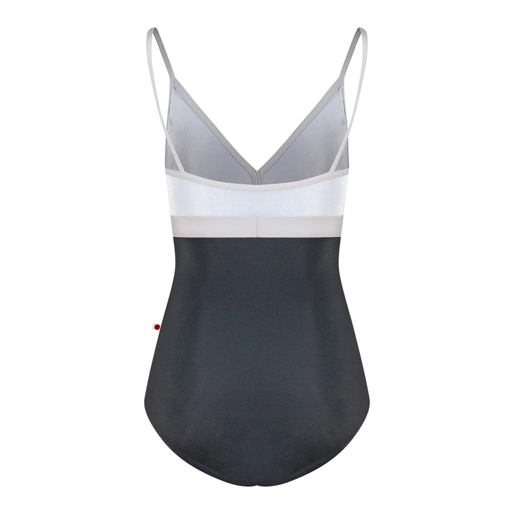 The Yumiko ZOE Titanium Camisole Leotard is a sophisticated choice for dancers seeking a blend of elegance and comfort. Inspired by traditional kimonos, this leotard features a color-blocked empire waistband that allows for fabric variation and a unique aesthetic. Designed as an adaptation of the popular Alicia style, it offers a snug fit that encourages sizing up for maximum comfort.